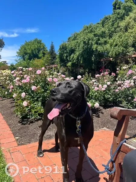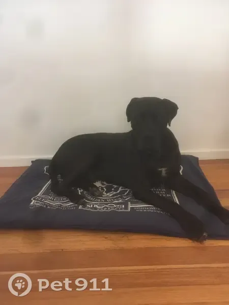Toby is a large black dog standing hip high. He is a gentle giant but easily frightened and when he is he bolts. He was tied up with another dog outside Readings bookstore and somehow broke loose and ran. He is trailing a long blue lead. He was seen in the water on West Beach and then on St Kilda pier but jumped off as someone was trying to catch him. We were minding him his owner is Kate Stokes whose number is on his tag but she is o/s so contact me on the number listed here or Patrick on 0417907175