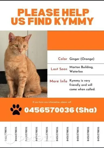 Lost pets Sydney, photo: Friendly Orange Cat Lost on Cope St, Sydney