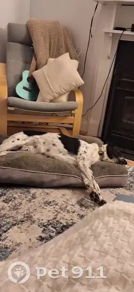 Mixed Breed. Black and white. Very anxious but obedient. Looks like cross between border collie and pointer. Thin white stripe down front of face. Medium to large size. Last weighed 21ks. Longish tail. Handsome!