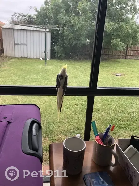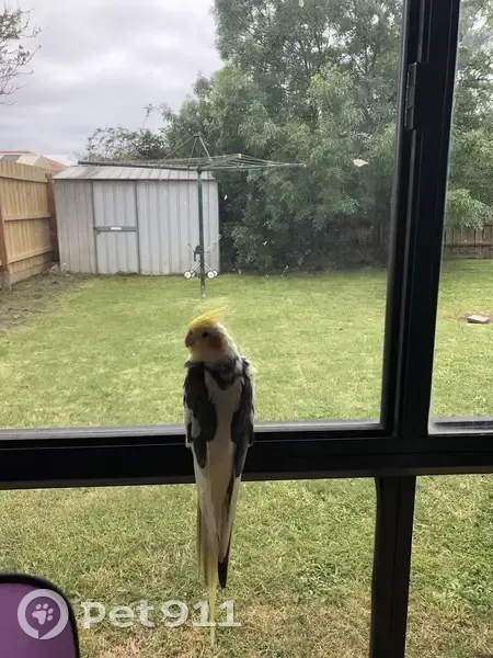 Angel is Yellow and white and grey on the back … he was flying around the house as he normally does but someone carelessly opened the door and Angel flew out … he flew away from Lynbrook 3975 …