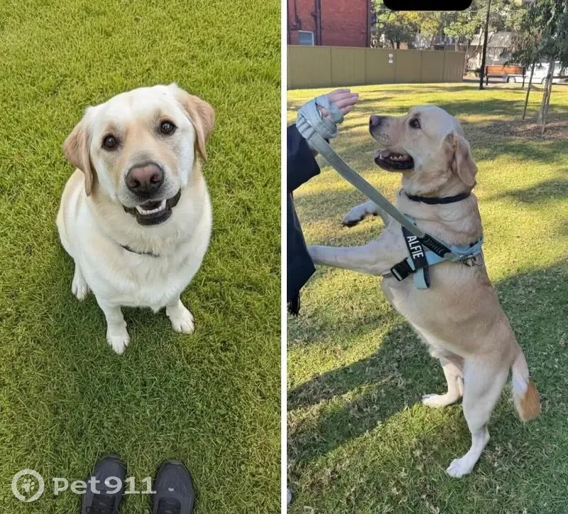 Golden white coloured Male desexed 2-3 year old labrador retriever last seen on Amaroo Avenue Strathfield. Has black birth Mark on tougue. Was wearing a black collar with white markings