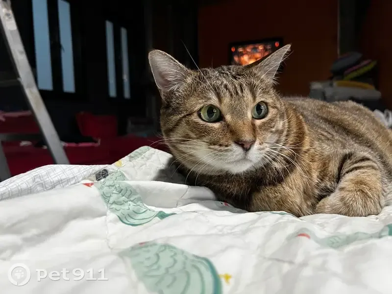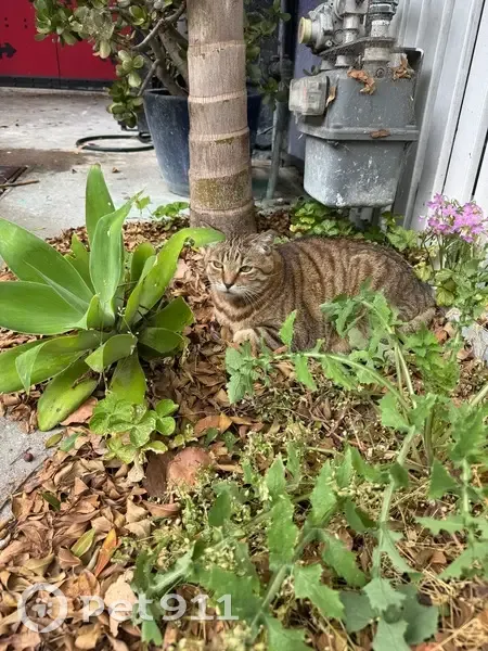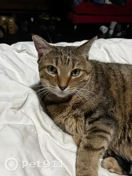 Sahara is SHD brown with black stripes, white around her mouth, green eyes She is microchipped but no collar, she always removed it. Very friendly, attracts lots of people . She is also fiercely independent. Wondered outside during the day but always came home and inside at dinner.
