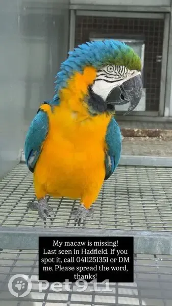 Lost pets Knox, photo: Lost bird, Fairview Street, 24, Melbourne - blue and gold macaw